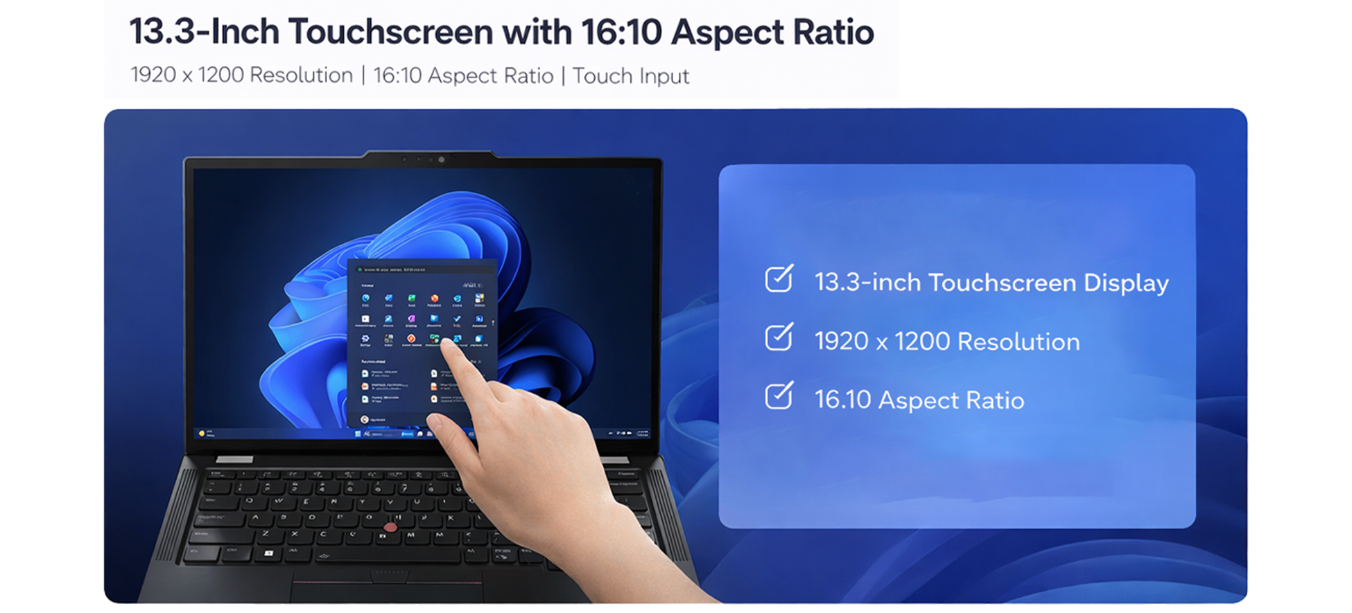 - This laptop offers a bright and sharp 13.3-inch WUXGA (1920×1200) IPS touchscreen with vibrant colors, providing excellent display features for better viewing and productivity.