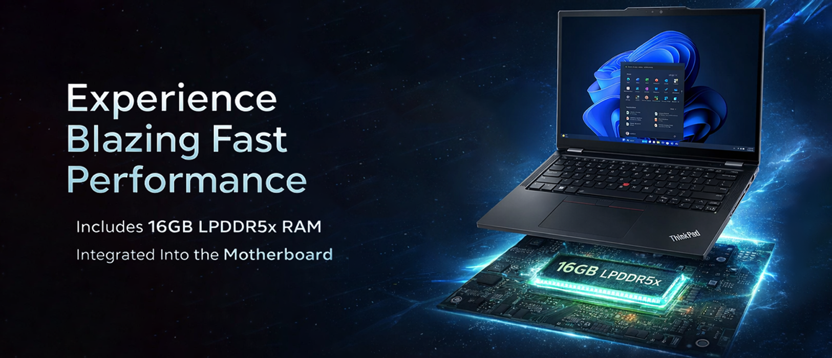 Includes 16GB of fast LPDDR5x RAM integrated into the motherboard. This memory capacity ensures your system remains responsive, even when multiple applications or browser tabs are open simultaneously.