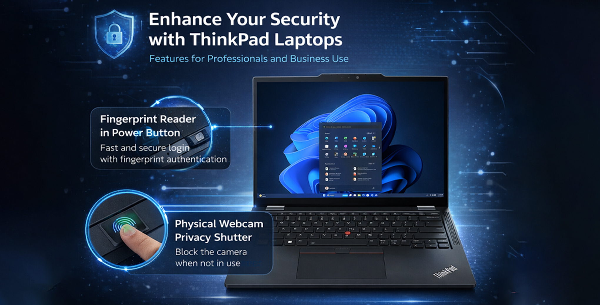 The laptop supports secure sign-in features through the operating system, offering protection against unauthorized access and making it suitable for professional and business use. Has a fingerprint reader built into the power button for fast and secure login. The webcam includes a physical privacy shutter, allowing you to block the camera when not in use.